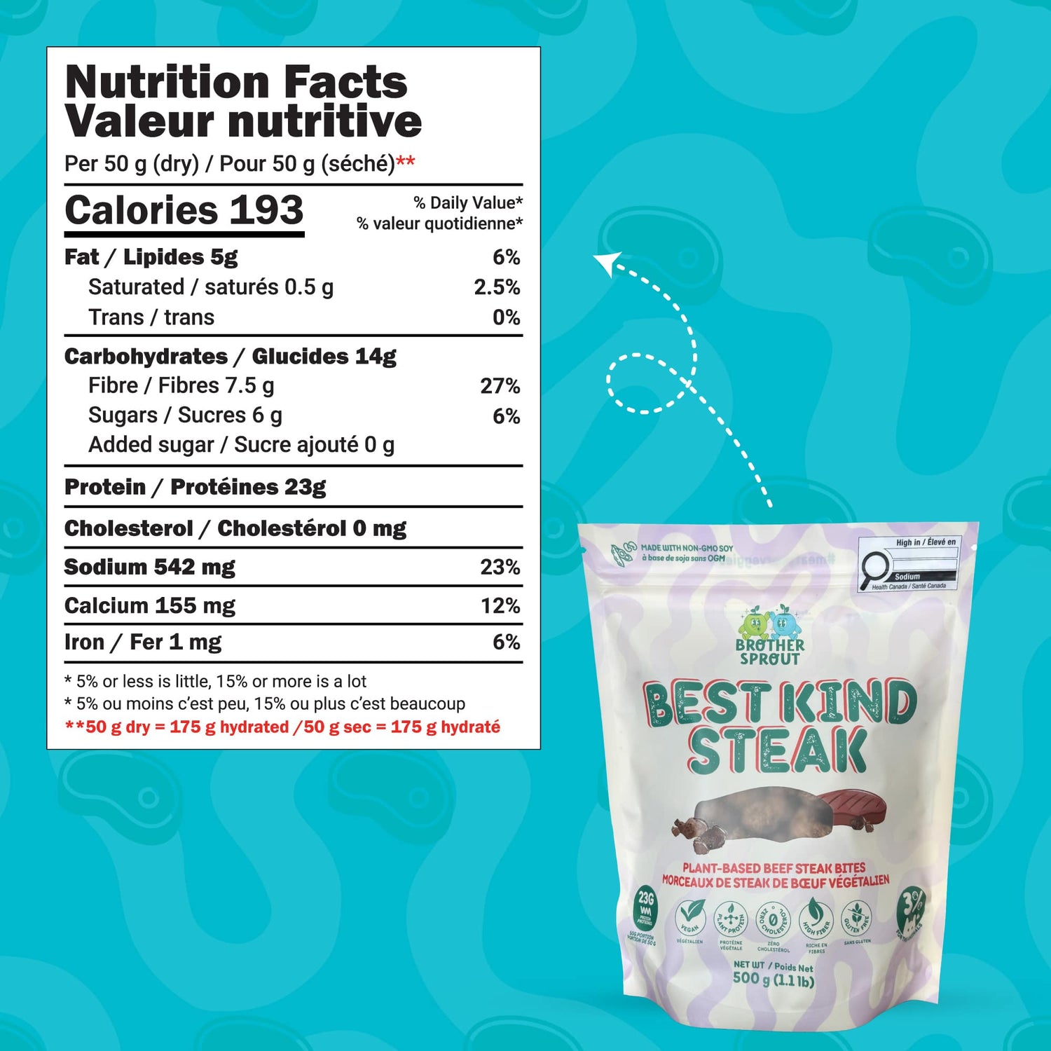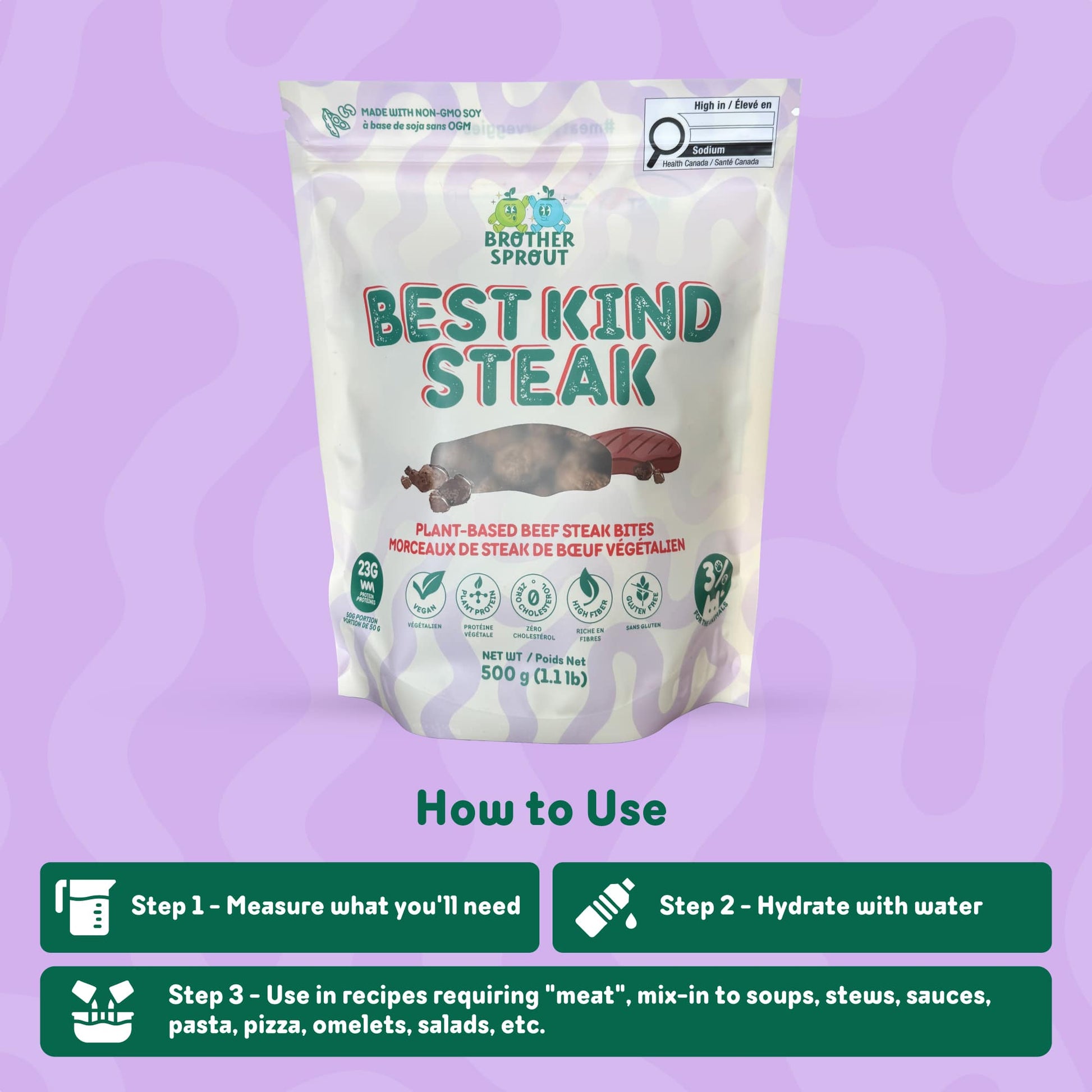 Hydration: Mix 1 part Best Kind Steak with 2.5 parts water, by weight.